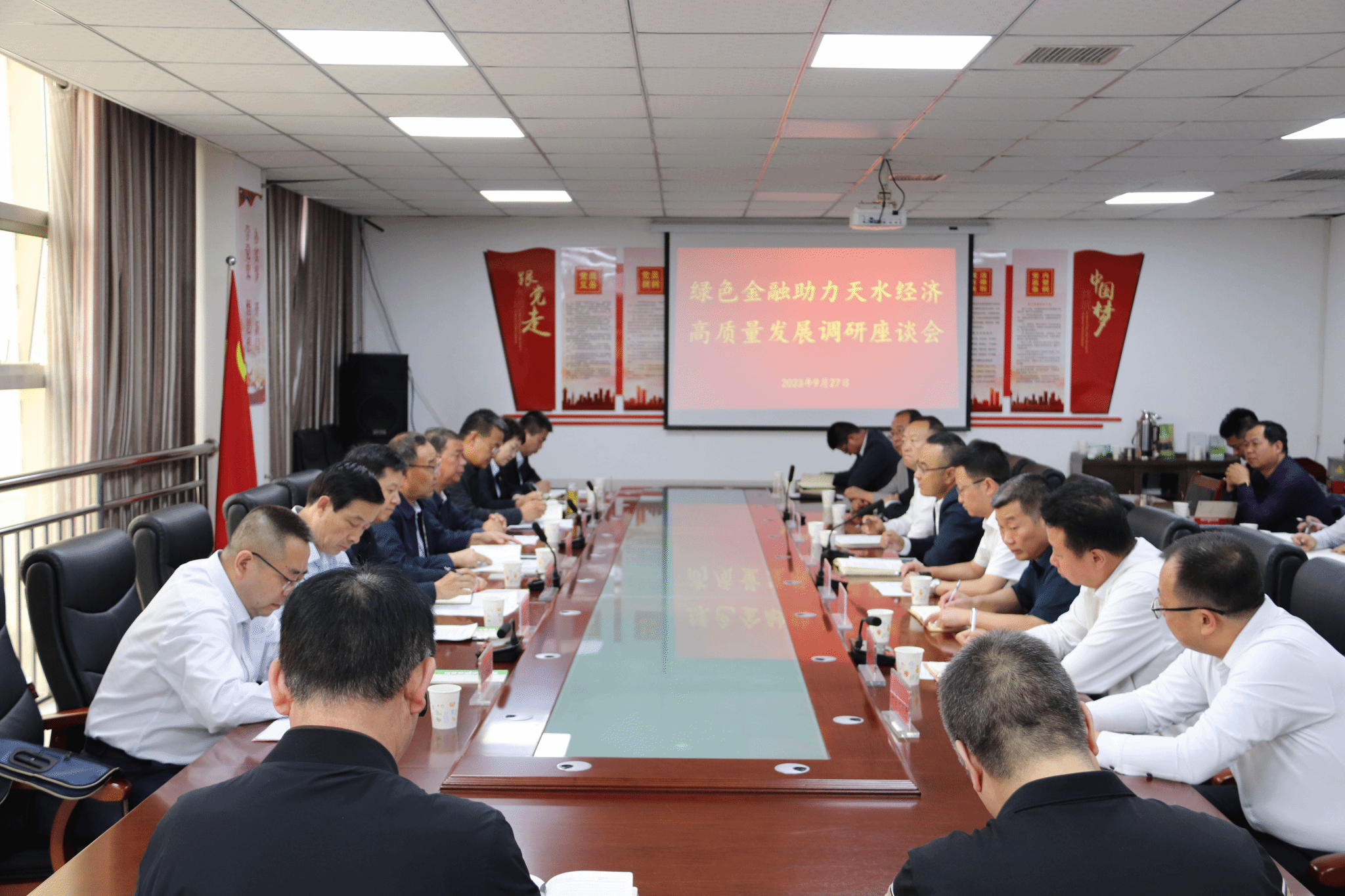 9月27日上午,中国人民银行天水市分行党委书记、行长周俊才等人,及兰州银行、交通银行负责人就我区绿色金融发展情况进行现场调研,并召开座谈会。经开区党工委副书记、纪检监察工委书记于爱平,管委会副主任党文强及财政局负责人等参加座谈会。甘肃陇鼎建设工程(集团)有限责任公司等六家园区企业负责人参加会议。