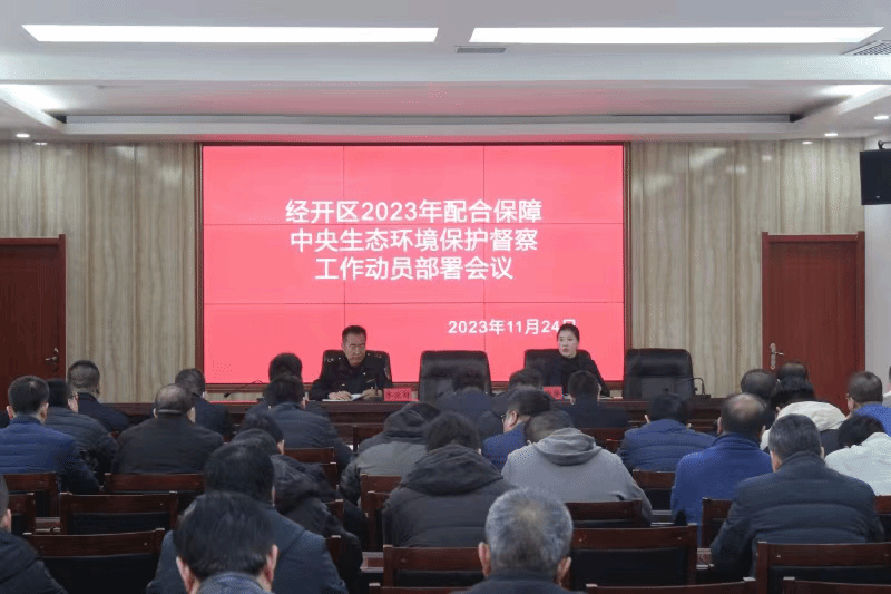 2023年11月24日上午,天水市经济技术开发区管理委员会副主任张淑香主持召开了天水经开区2023年配合保障中央生态环境保护督查工作动员部署会议。会议传达了省、市配合保障中央生态环境保护督察工作动员部署会议精神,宣读了《经开区配合保障中央生态环境保护督察工作方案》,成立了保障工作机构,分解了部门职责任务。开发区环委会各成员单位、经开区各相关企业及在建项目单位的负责同志共60余人参加了本次会议。