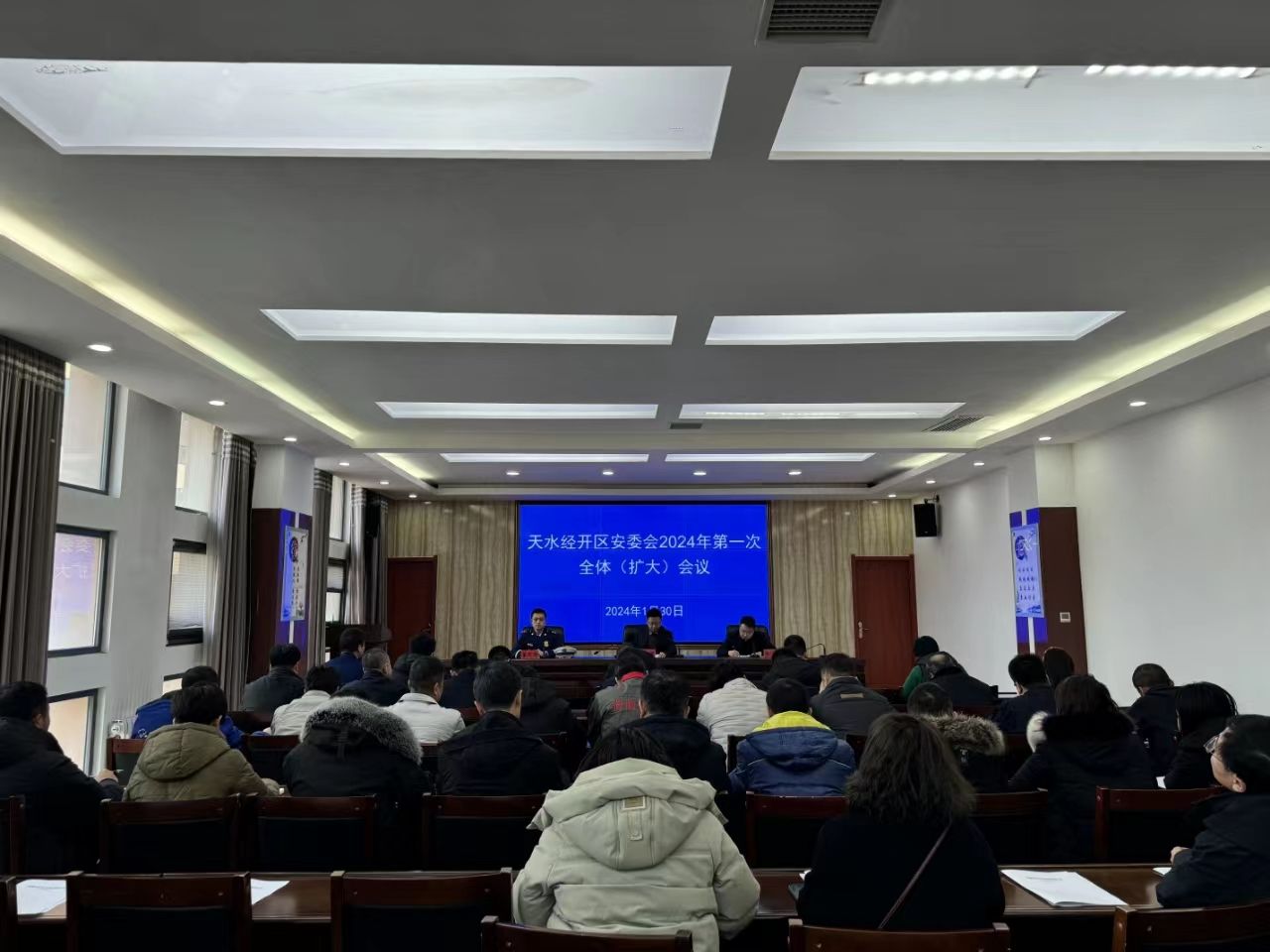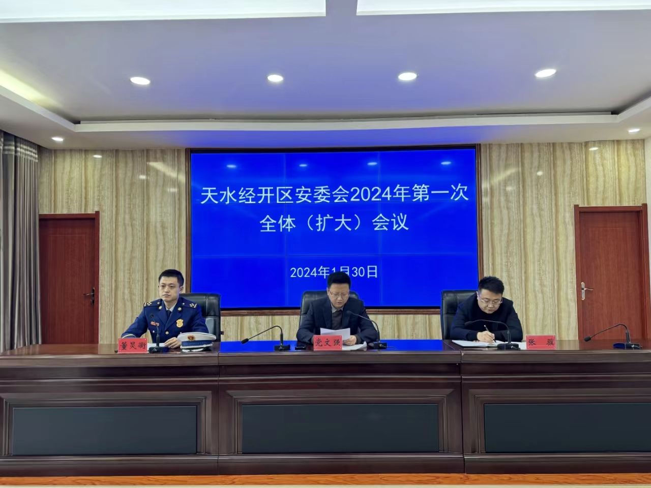 1月30日,经开区管委会副主任党文强主持召开天水经开区安委会2024年第一次全体(扩大)会议。会议传达学习了习近平总书记对云南昭通市镇雄县山体滑坡、江西新余市渝水区一临街店铺火灾事故重要指示、李强总理批示精神和全国、全省安全生产工作会议精神,并就做好经开区2024年安全生产工作进行安排部署。