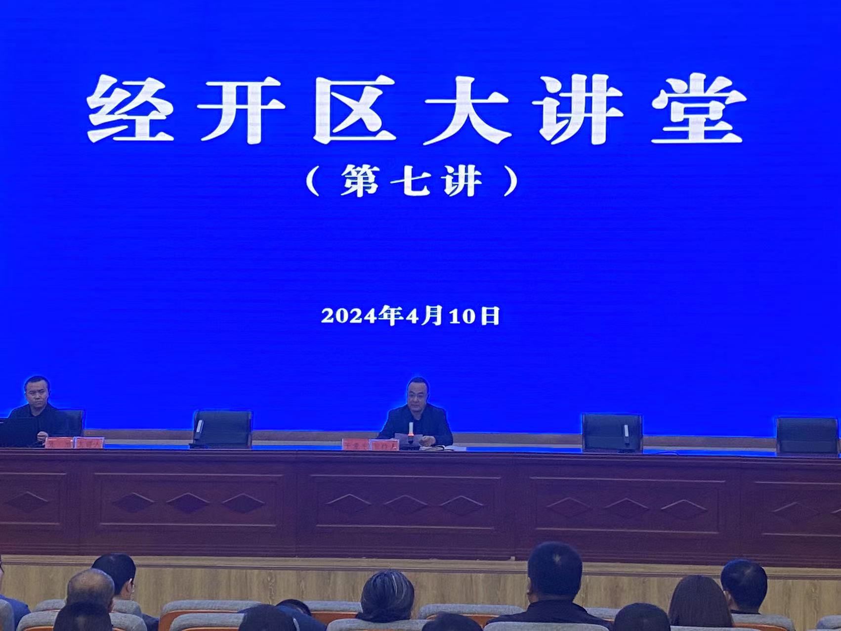 “经开区大讲堂”第七讲由党工委副书记、纪检监察工委书记于爱平同志主持,经开区党工委在家班子成员、各部门单位干部、各企业代表共计120余人参加。